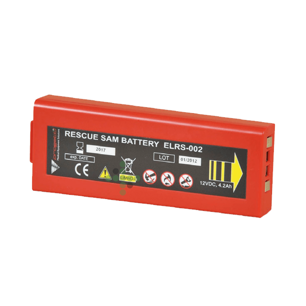 Batéria pre defibrilátor RESCUE SAM. Náhradná batéria pre defibrilátor RESCUE SAM. Nenabíjateľná batéria má výdrž 5 rokov v pohotovostnom režime.