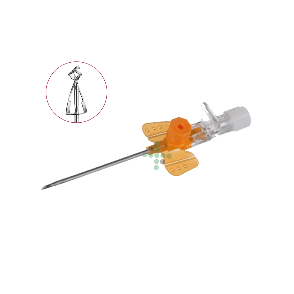- Príslušenstvo: fixačné krídelká, injekčný port s jednocestným ventilom, bezpečnostný mechanizmus ihly