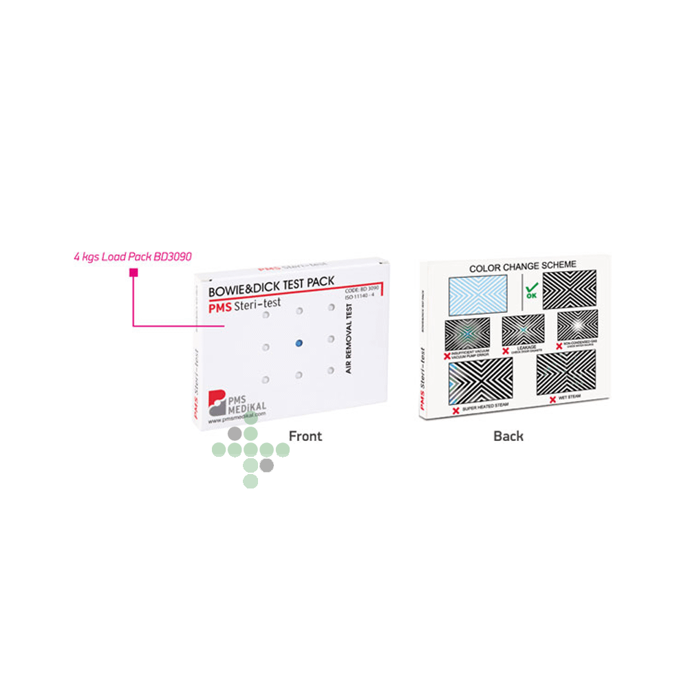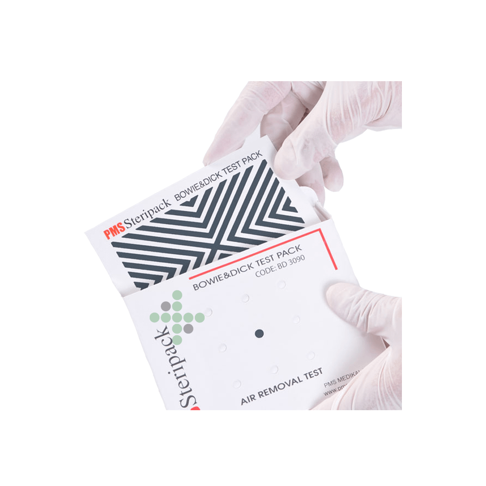 V strede každého balenia je umiestnený indikátorový list vytlačený netoxickým chemickým indikátorom na vodnej báze. Rovnomerná zmena farby indikátora po sterilizácii parou znamená, že všetok vzduch bol odstránený a nahradený parou. Zadná strana indikátora obsahuje polia, ktoré je potrebné vyplniť, a môže sa uchovávať ako trvalý záznam na účely vysledovateľnosti. absencia olova a iných ťažkých kovov.