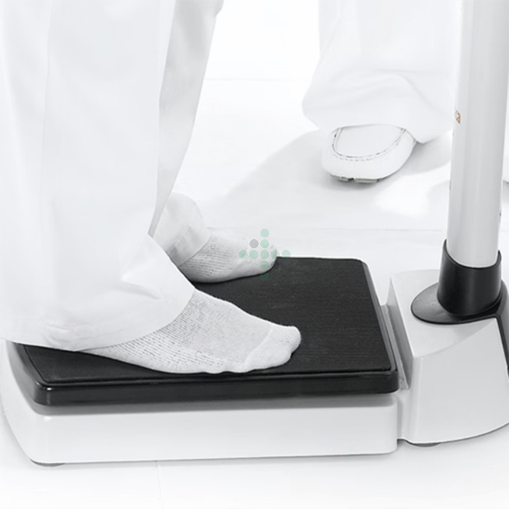 - Kapacita 300 kg zvládne všetko: Tíživí alebo obézni pacienti sa môžu ľahko a bezpečne postaviť na veľkú a rovnú plošinu váhy seca 704. Vďaka pevnej základni z liatiny a protišmykovému povrchu nič nekĺže ani neohrozuje pevné a bezpečné umiestnenie pacienta.