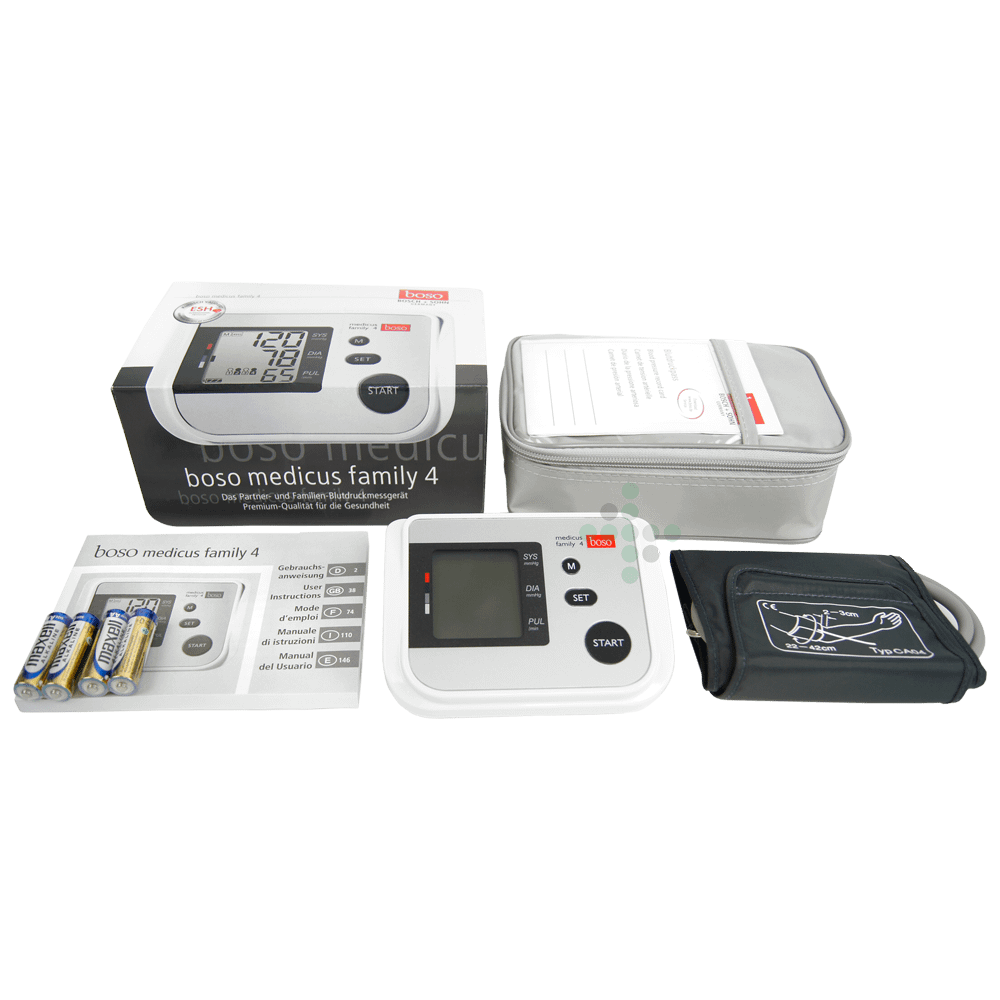 BOSO Medicus Family 4 je spoľahlivý digitálny tlakomer určený na meranie krvného tlaku na ramene oscilometrickou metódou. Tento plne automatický tlakomer ponúka jednoduché a presné meranie, vhodné pre celú rodinu.