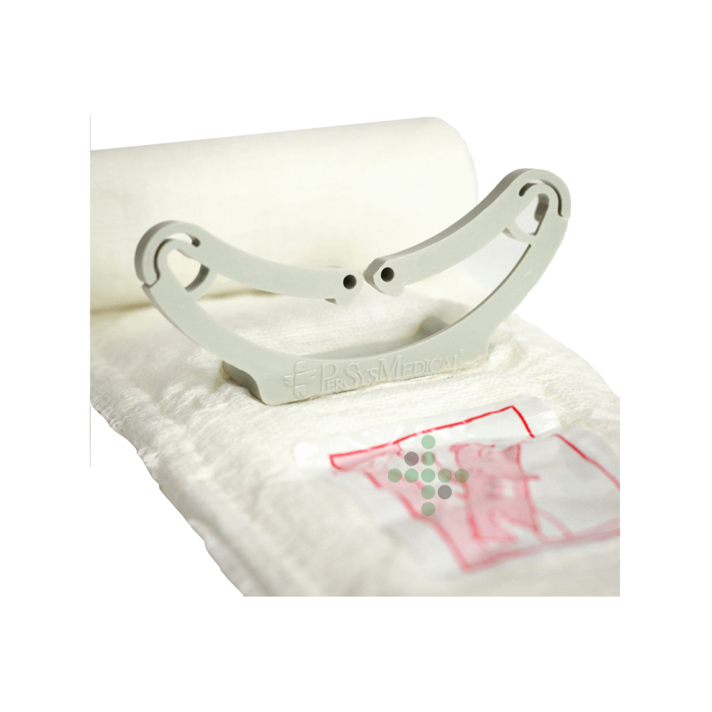 Sterilné balenie možno použiť aj ako improvizovaný hrudný uzáver. Integrovaná prítlačná spona vyvíja okamžitý a priamy tlak na ranu.