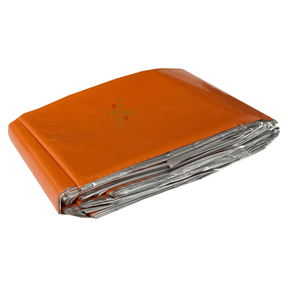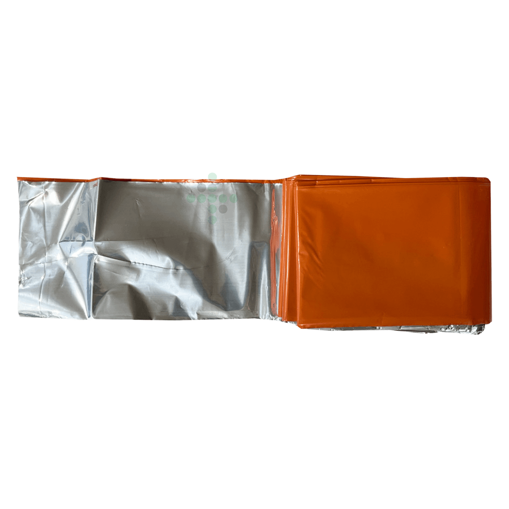 Poskytuje lepší odraz telesného tepla a odolnosť v porovnaní s tradičným mylarom. Vysoko viditeľná oranžová na jednej strane a metalizovaná strieborná na druhej strane.