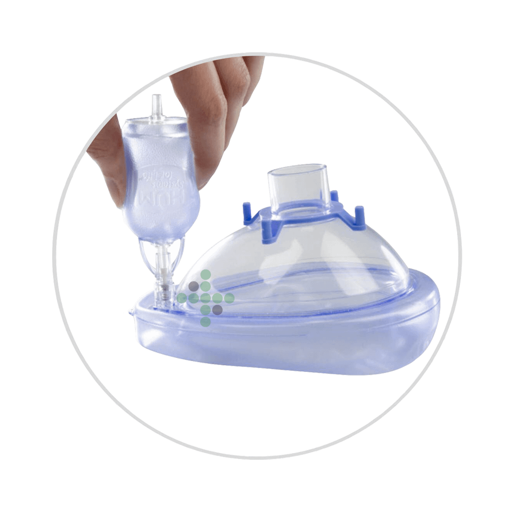 Nafukovanie resuscitačnej masky vďaka malej, praktickej pomôcke na infláciu a defláciu resuscitačných masiek s fixačným háčikom pre upevnenie ako kľúčenka.