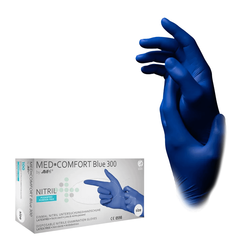 Med-Comfort rukavice nitrilové LONG 300 mm, 100 ks. Nepúdrované. Predĺžené nitrilové rukavice. Prémiové jednorazové nitrilové rukavice od značky Med-Comfort.