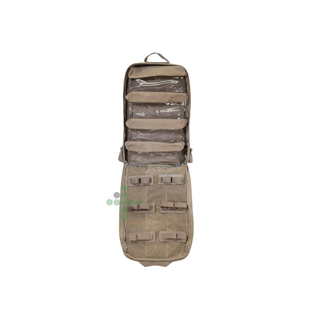 Vo vnútri tašky na priamu akciu sú priehľadné odnímateľné vrecká, ktoré umožňujú rýchle a usporiadané ošetrenie.