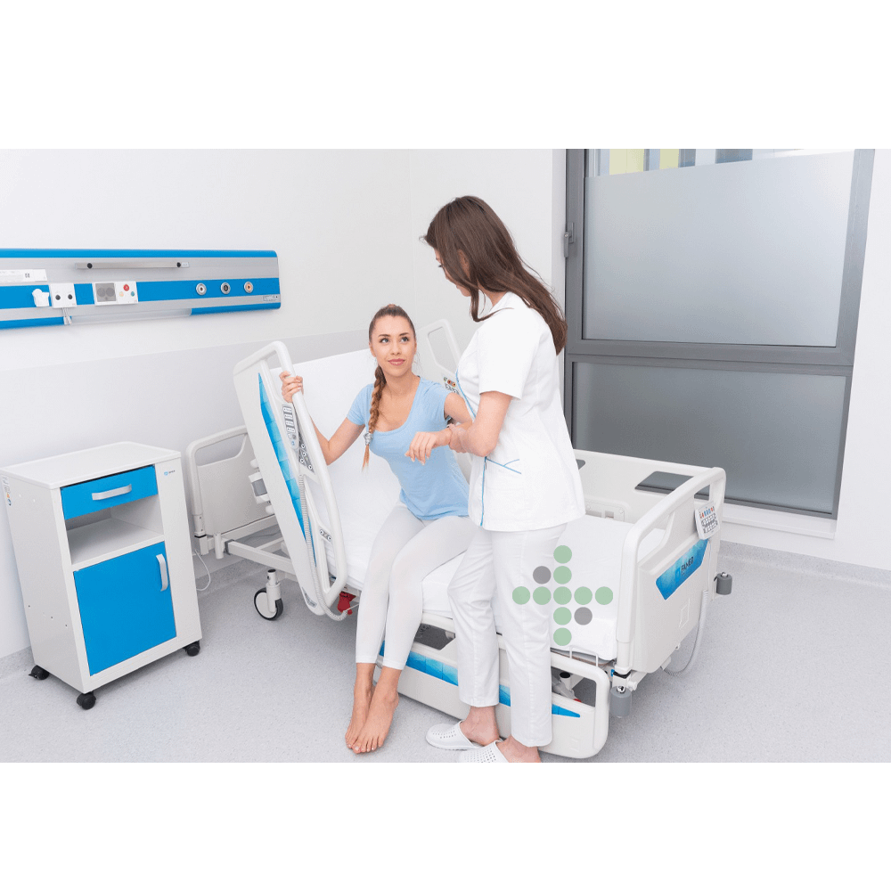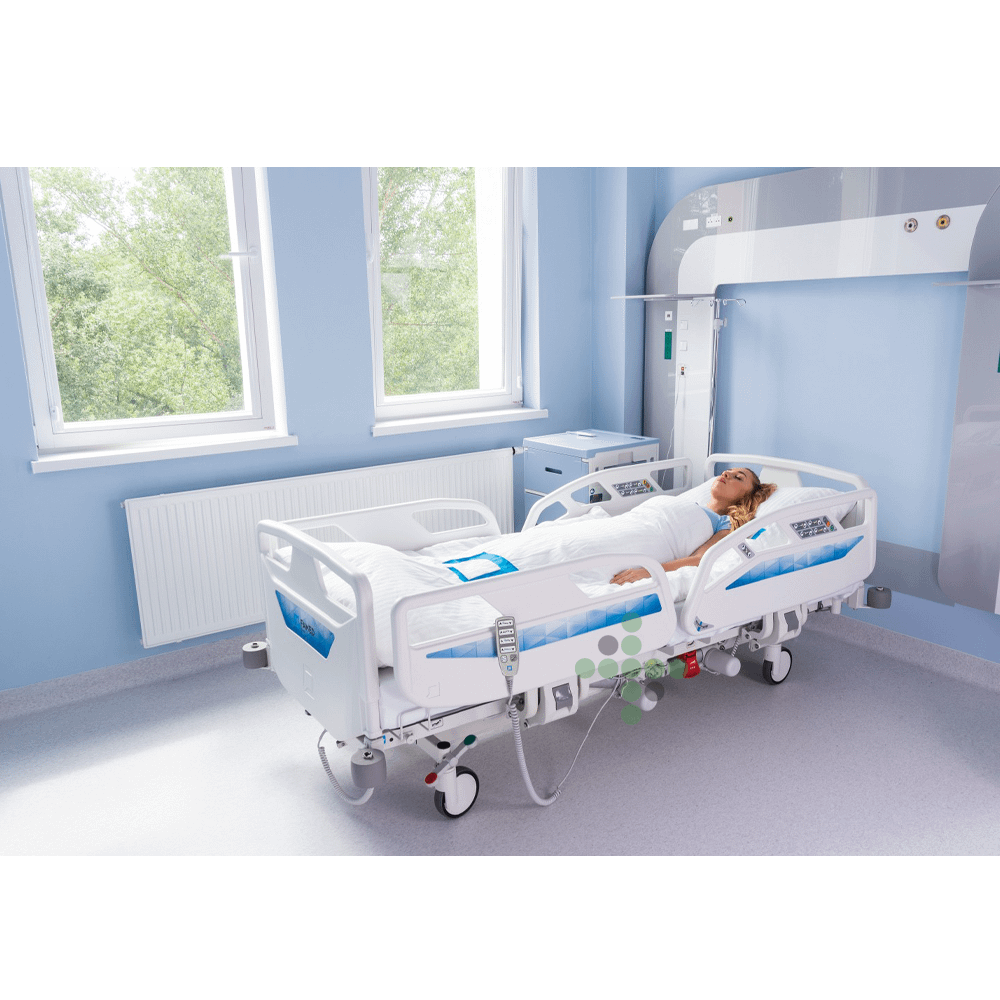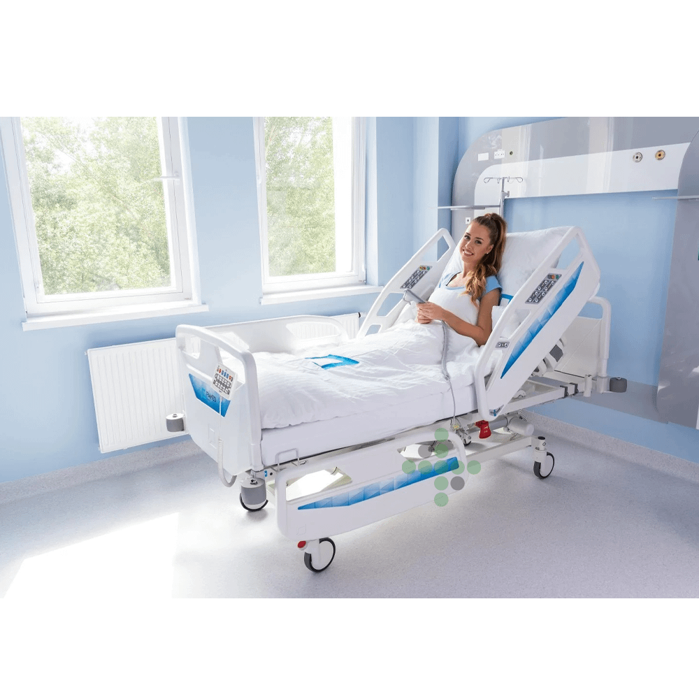 Elektricky ovládané nemocničné lôžko prispôsobené potrebám personálu a pacientov v rôznych štádiách rekonvalescencie.