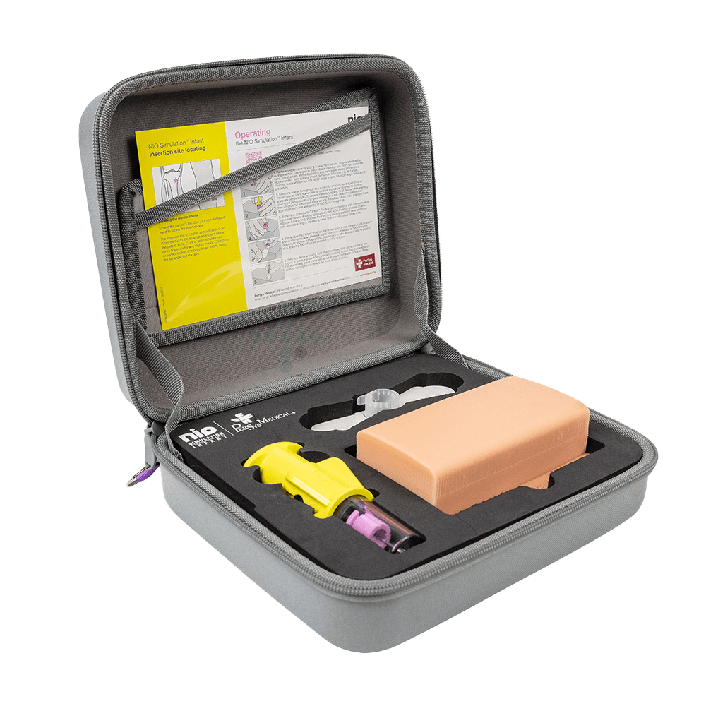 Simulačné intravenózne zavádzanie u dojčiat. Zariadenie NIO Simulation Infant napodobňuje skutočné zavedenie IO dojčiat, od identifikácie miesta zavedenia až po odstránenie kanyly. Jeho opakovane použiteľný dizajn navyše umožňuje desiatky použití.