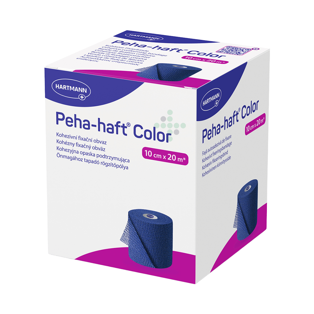 Peha-haft fixačný obväz bez latexu - 10 cm x 20 m, farba modrá.