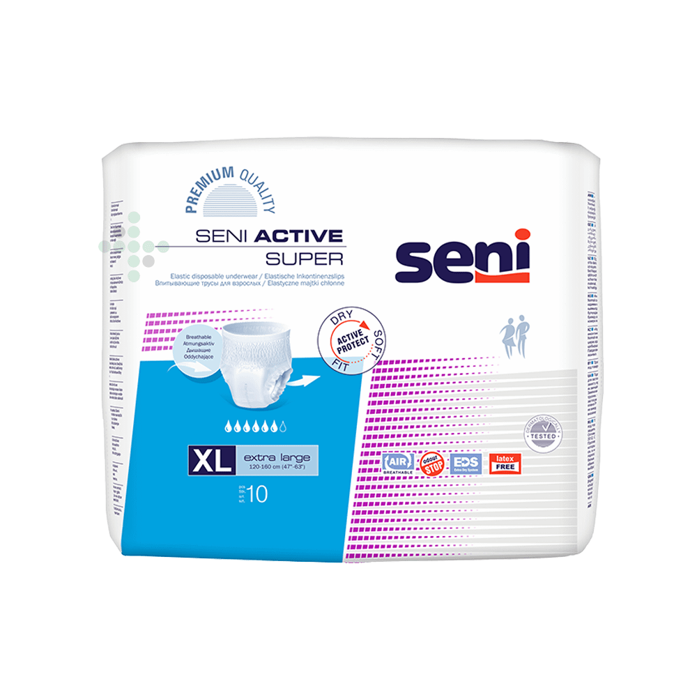 Seni Active Super naťahovacie plienky XL, 10 ks. Plienkové nohavičky pre osoby so strednou a ťažkou inkontinenciou.