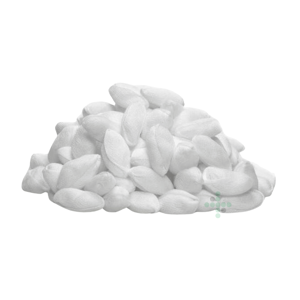 Tampón stáčaný 30/30 nesterilný z bielenej hydrofilnej gázy, vyrobený zo 100% bavlny.