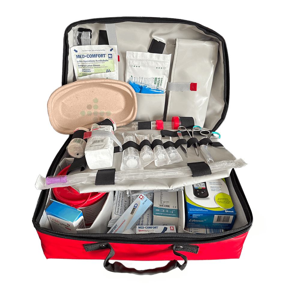 Taška pre zdravotnú sestru s výbavou HT03-MBVL1 - zdravotnícky kufrík v červenej farbe. Taška zdravotnej sestry podľa MZ SR 44/2008.