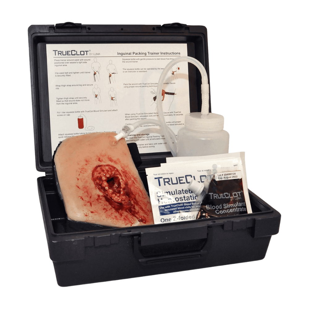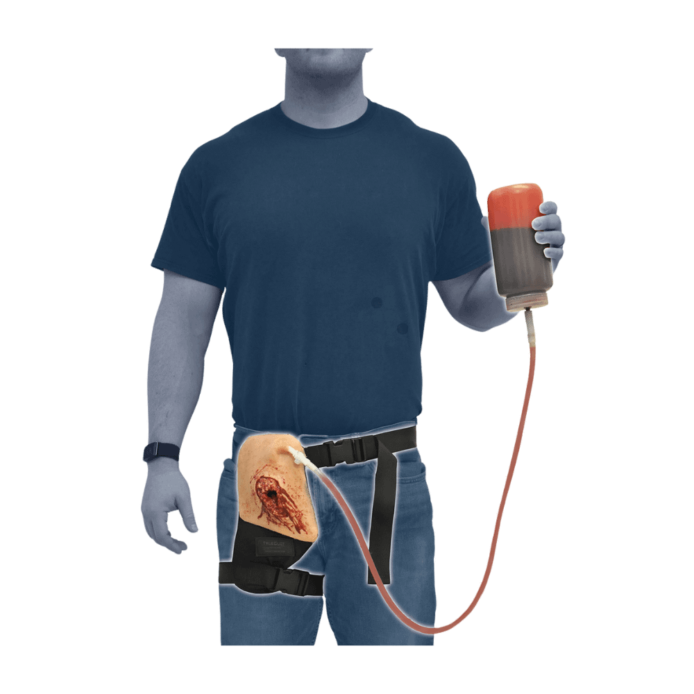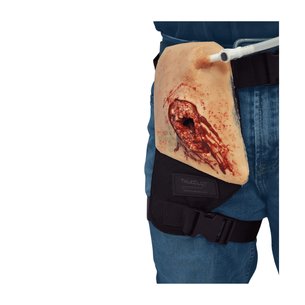 Trenažér je možné nosiť pod oblečením alebo na oblečení. Pre najvyššiu úroveň realizmu použite TrueClot Blood Simulant a Simulovanú hemostatickú gázu pre realistickú simuláciu zrážania krvi. Trenažér je určený len pre inguinálnu oblasť na pravej strane.