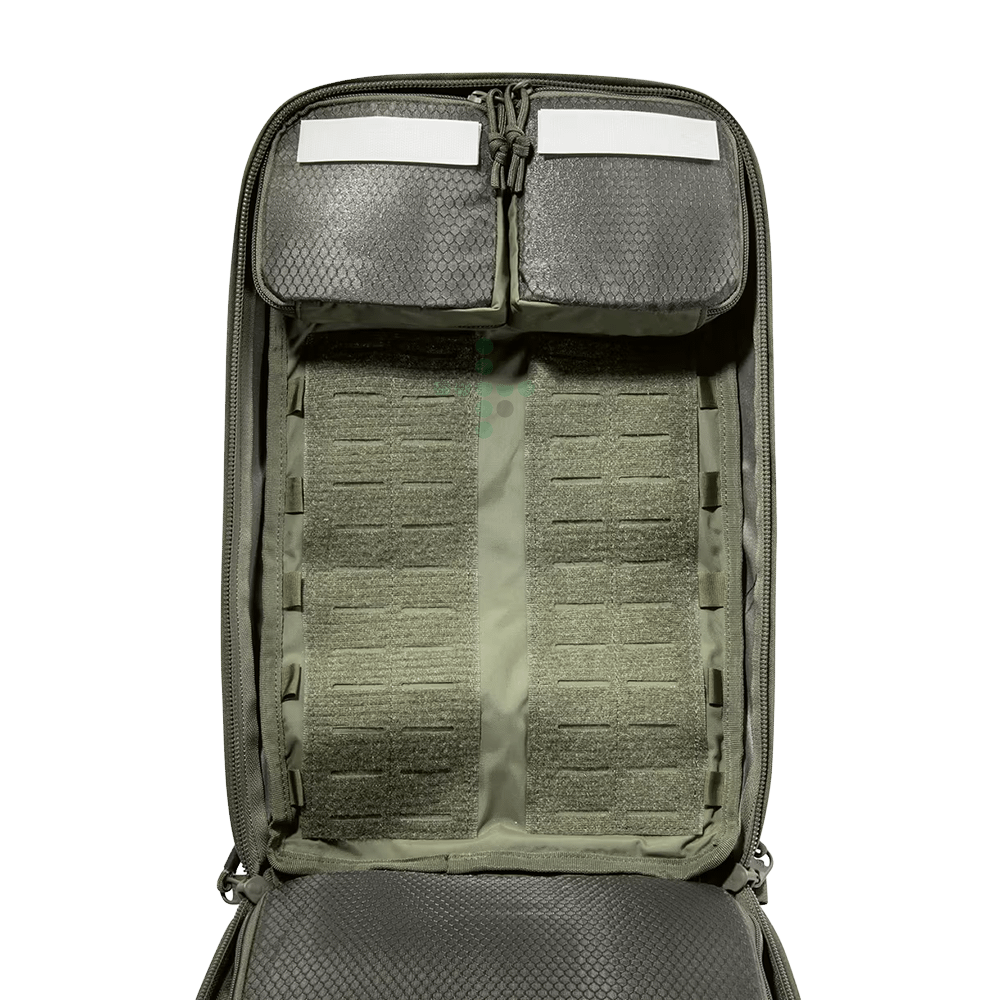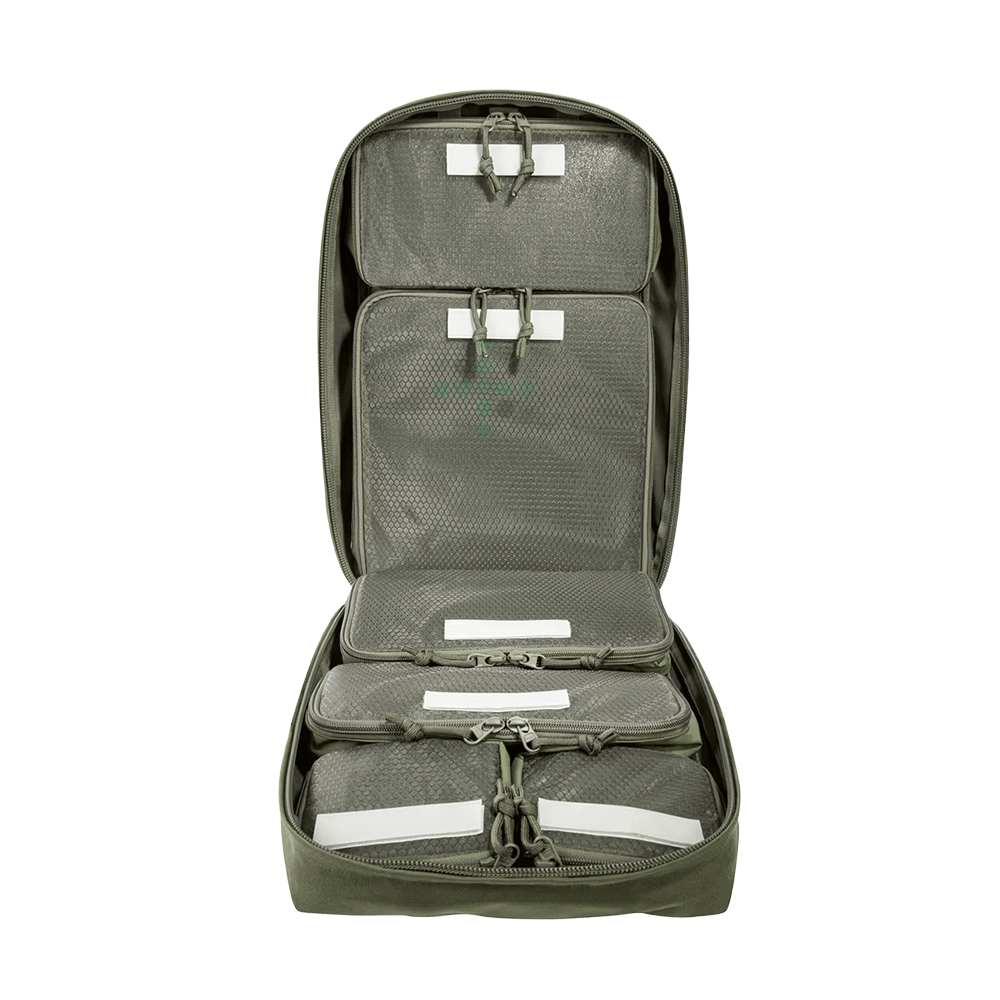 Batoh TT Survival Pack má optimálnu veľkosť a poskytuje vybavenie pre najdôležitejšie potreby na prežitie. Plne roztiahnuteľná hlavná priehradka má šesť vreciek rôznych veľkostí s priehľadným uzatváraním, z ktorých dve je možné vybrať. Hlavná priehradka je tiež vybavená veľkým suchým zipsom MOLLE, ktorý umožňuje prispôsobenie podľa svojich požiadaviek. Spodná priehradka obsahuje obojstrannú pláštenku (jedna strana s pruhmi vo výstražnej oranžovej farbe) a taktický značkovač. Dve ploché priehradky na zips na prednej strane sú ideálne napríklad na uloženie dokumentov. Ďalšie vrecká alebo panely je možné pripevniť aj na háčiky na prednej strane. Ramenné popruhy batohu a rukoväte na prenášanie je možné odložiť, keď je batoh uložený vo vozidle.