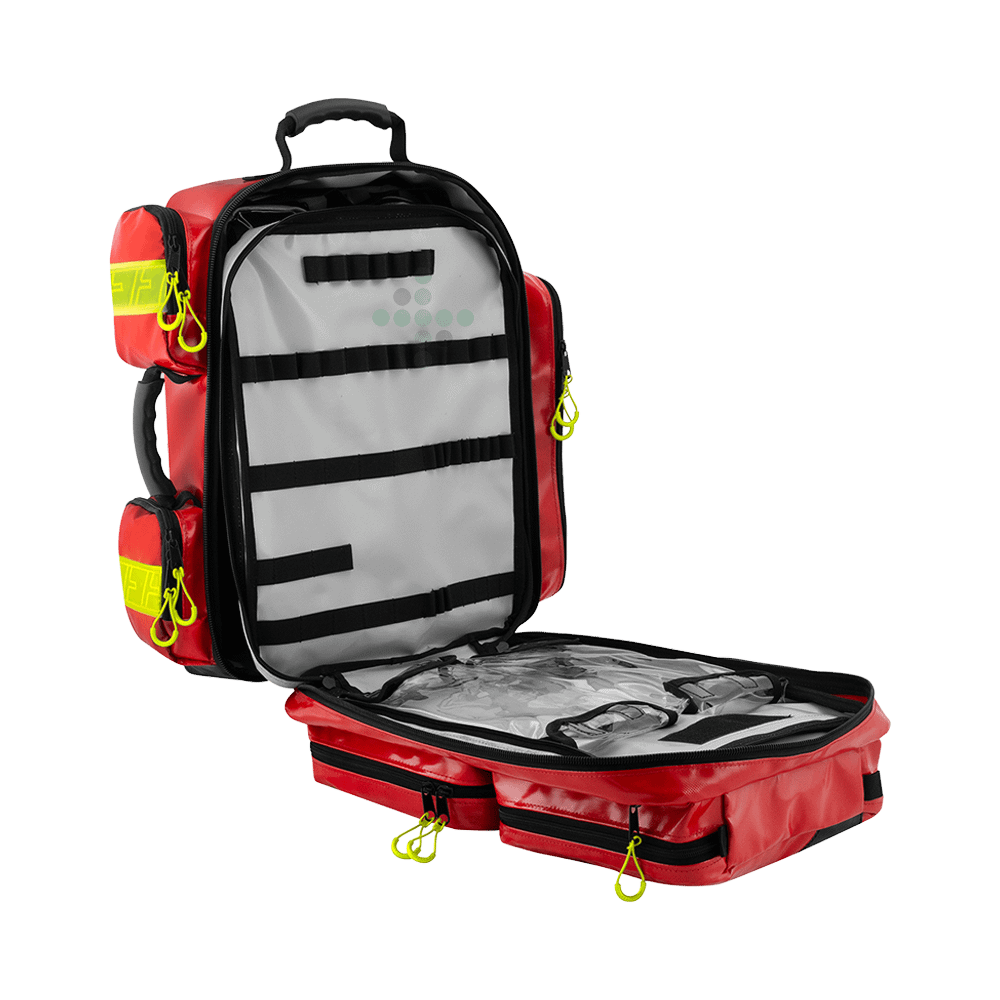 Záchranárska taška PROFI LARGE HT03-MPXL1C s vybavením pre záchranárov. Taška so zdravotným materiálom - náplň DIN 13164. Záchranársky batoh veľkosti XL vyrobený z Plan materiálu. Dvojdielne vnútro so 7 transparentnými modulárnymi vnútornými vreckami v rôznych veľkostiach. Integrovaný držiak O2 fliaš (0,8l, 1l a 2l). Dve ergonomické rukoväte a vrchnej a bočnej strane.